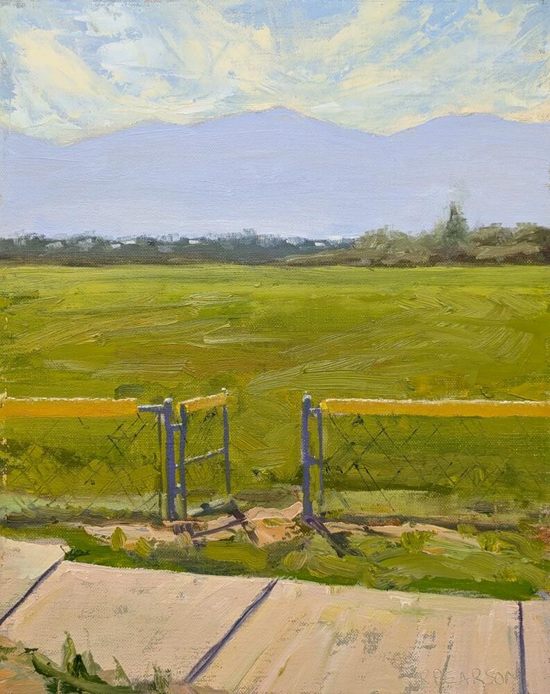 I wanted to paint something a bit different one morning, and I was inspired by this view at the local baseball field. I liked the contrast of the green grass with the distant blue mountains. I wanted to paint something a bit different one morning, and I was inspired by this view at the local baseball field. I liked the contrast of the green grass with the distant blue mountains. |